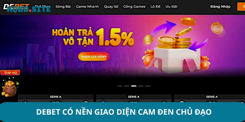 Debet có nền giao diện cam đen chủ đạo