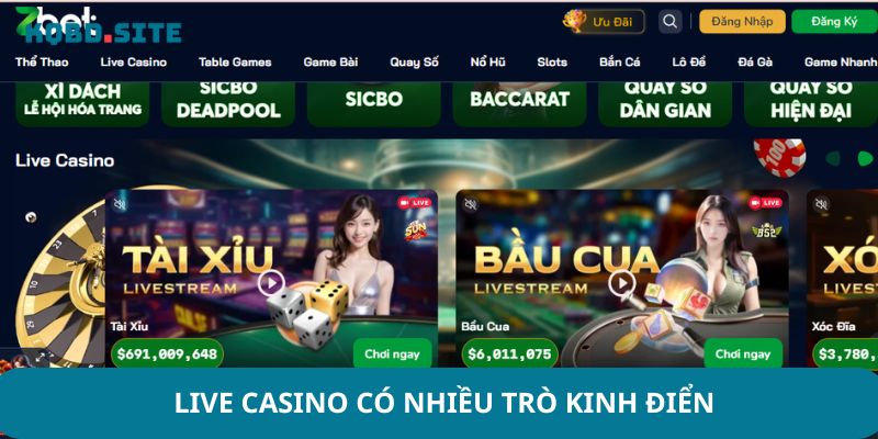 Live casino và game bài đẳng cấp